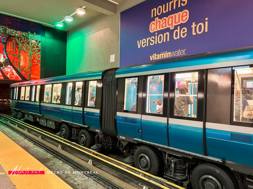 另外蒙特婁地鐵還有一個很特別的地方,就是蒙特婁地鐵的列車,地鐵的列車是跟我們台北捷運文湖線一樣採用膠輪膠軌,而非我們傳統常見的鋼輪鋼軌。