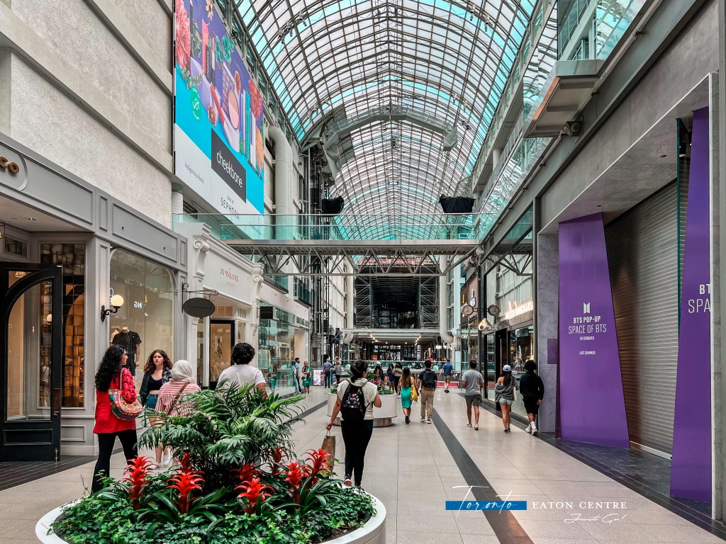 Eaton Centre是位於在市中心最大的購物中心,而且搭乘地鐵可以直達購物中心內部,交通十分便利。許多知名的品牌都有在Eaton Centre中設店面,包含Roots、Apple、H&M、ZARA、Victoria Secret等,是在市中心逛街購物的最好去處。