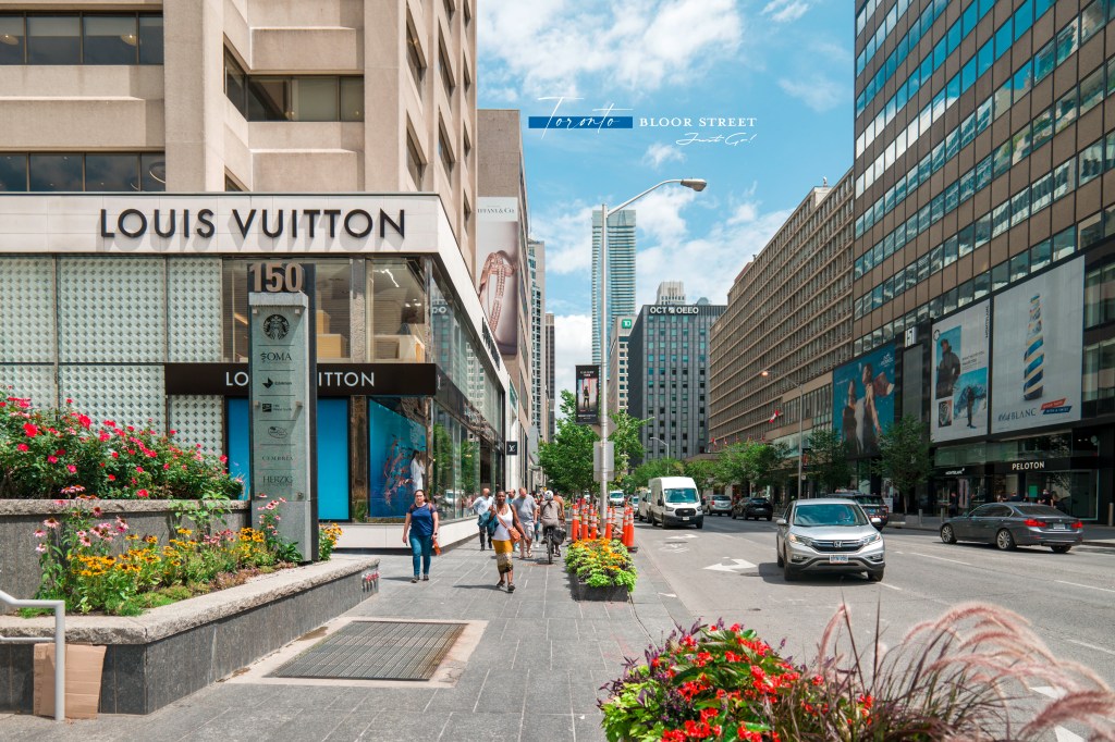 Bloor Street這條大街上,可以說是多倫多的第五大道,世界各國知名精品品牌,如LV、Chanel、Rolex、愛馬仕等的旗艦店都聚集在這條街上。因此這裡也是多倫多市區除了Eaton Centre購物中心之外,另一個逛街購物的好去處。