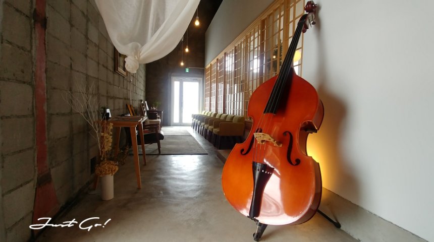一進門,一把低音大提琴置放在玄關,通風而不太過於寒冷,當外頭下雪,當作進門前的一個鞋子、雪鞋乾燥室,看起來也是等候室。