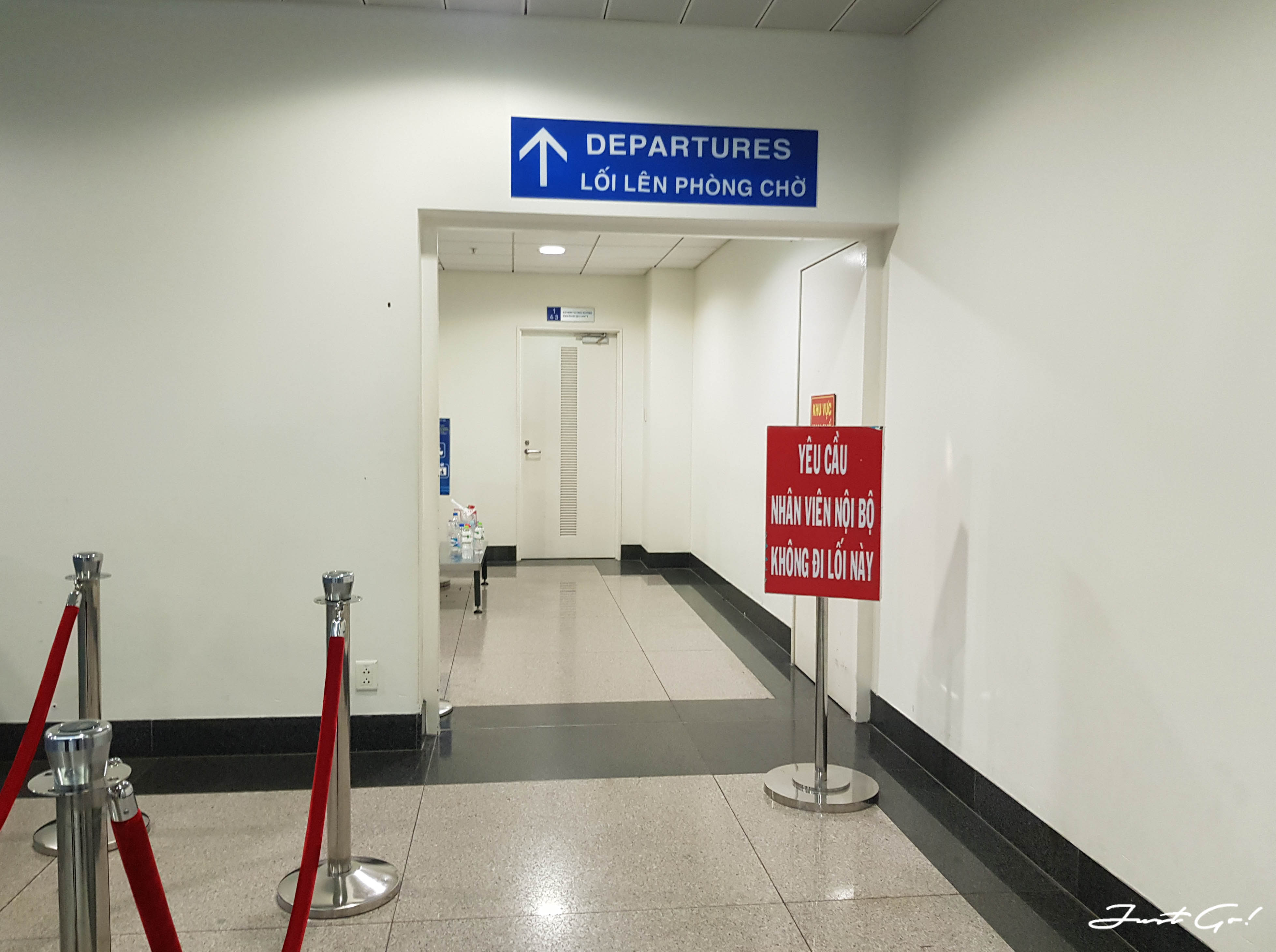 抵達胡志明市新山機場,下飛機後隨著標示走向轉機櫃檯。
