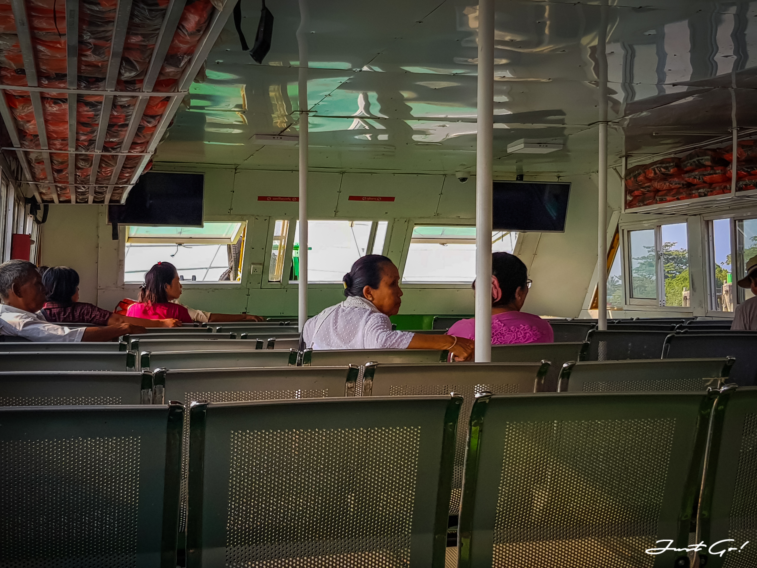 在碼頭等待了一陣子,終於看到水上巴士緩緩的駛來。搭上了船,其實內部與一般渡輪沒太大差別,十分簡陋。