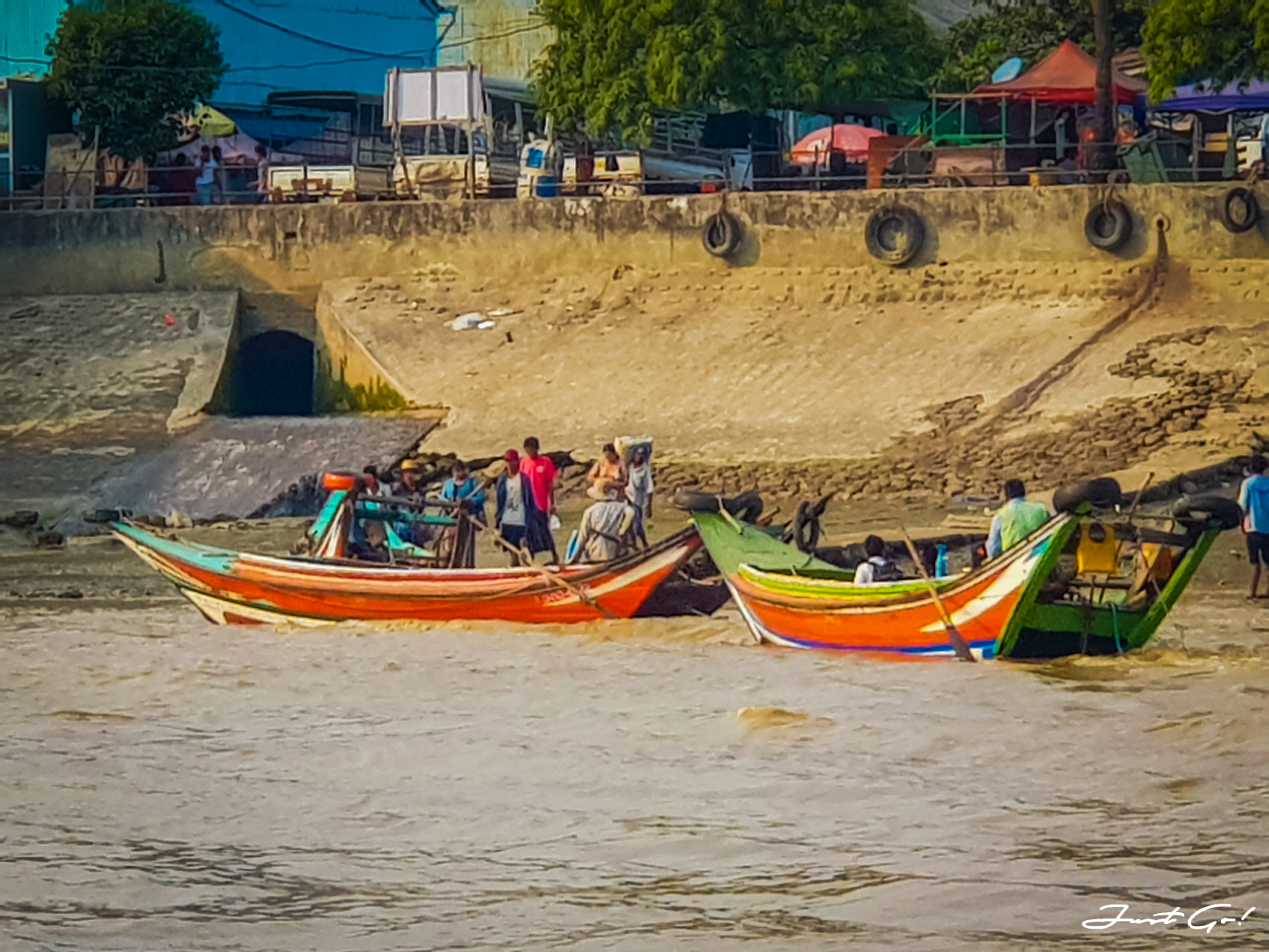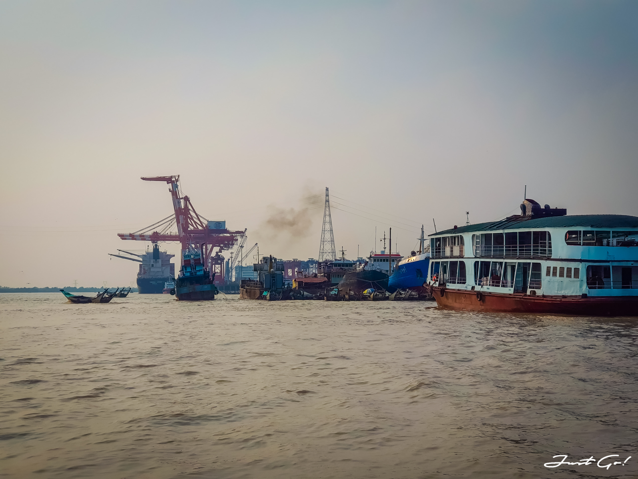 不過能用少少的費用,瀏覽仰光河港兩岸的景色,不為也是一種蠻不錯的體驗。沿途也看到當地人搭乘的小型人力船,看著這些小船搖搖晃晃的橫渡河岸,不免讓人感覺心驚膽顫,不過看到當地人似乎已經習慣搭乘這種小船,儼然已是他們的日常。