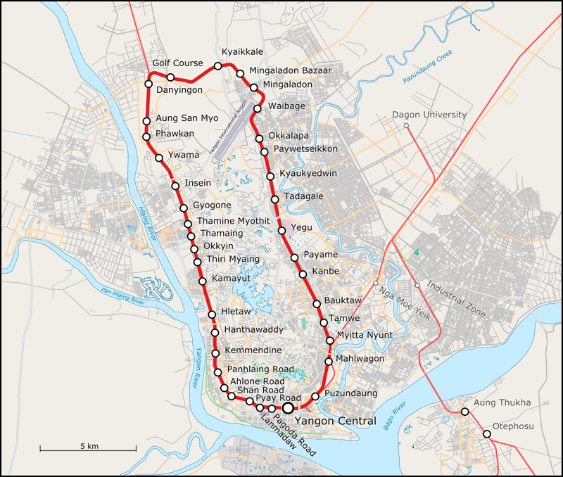 環狀線火車建於英國殖民時期,搭乘一次僅需200Kyats,價格非常便宜,所以一直是仰光當地居民主要的交通工具之一。