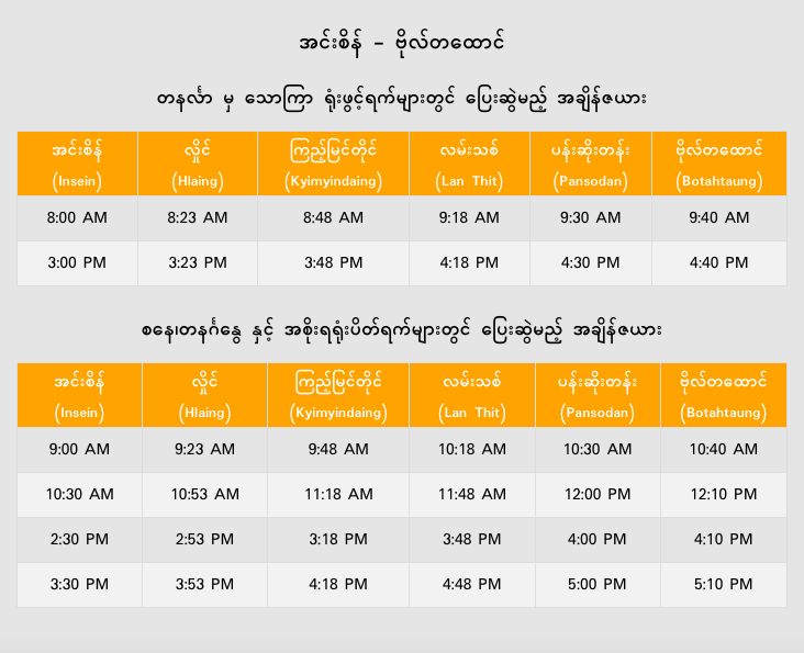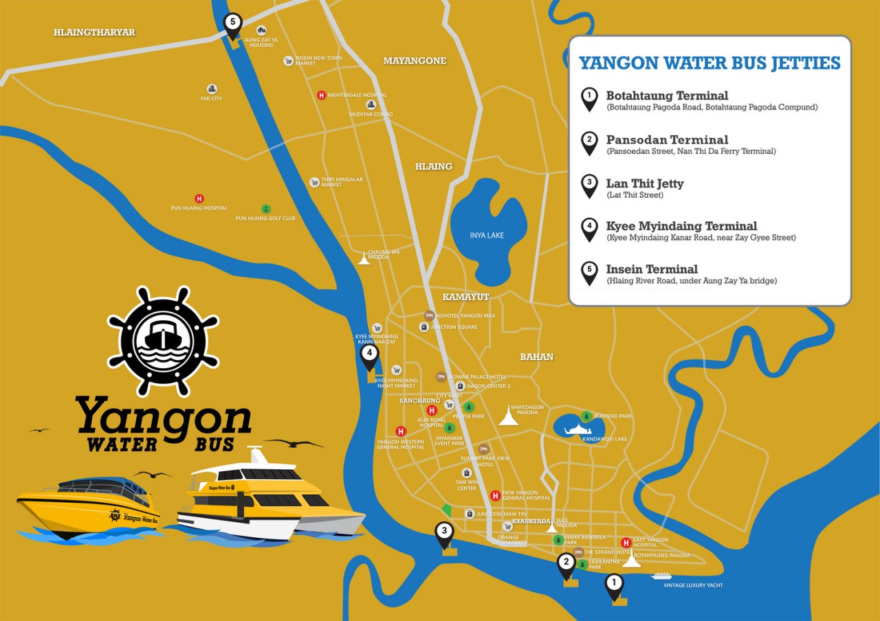 仰光水上巴士是在2017年才正式通航的水上交通工具,沿著仰光河行駛,目前路線一共會停靠5個碼頭。