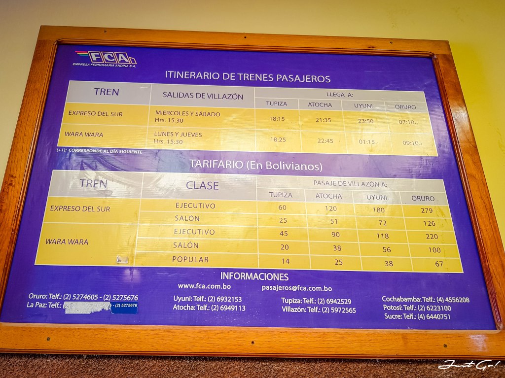 這次我們從邊境的比亞松出發時間剛好是星期一,所以就搭乘Wara Wara的火車前往烏尤尼,單程火車票價為一人10美金,我們在阿根廷邊境城市La Quiaca住宿時就直接請旅館幫我們帶訂車票。