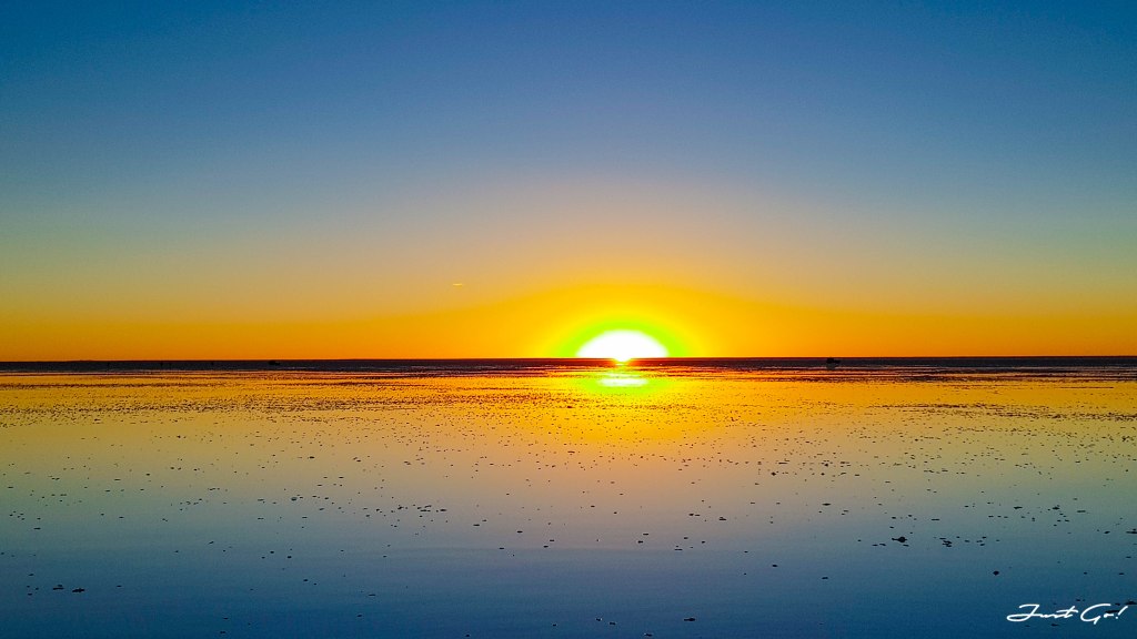 結果我們在鹽沼中拍照實在拍得太久,原本預定要去的仙人掌島就只好直接被省略了(其實也沒多想看仙人掌)。眼看距離日落時間越來越近,換上雨鞋,又再次的前往積水的鹽湖上出發。