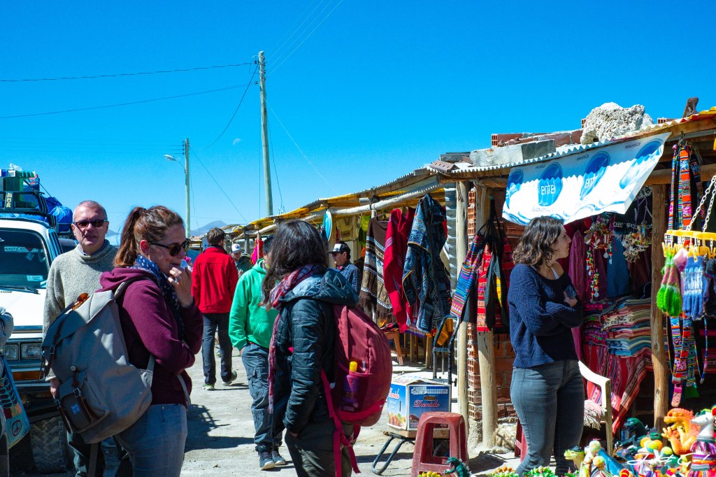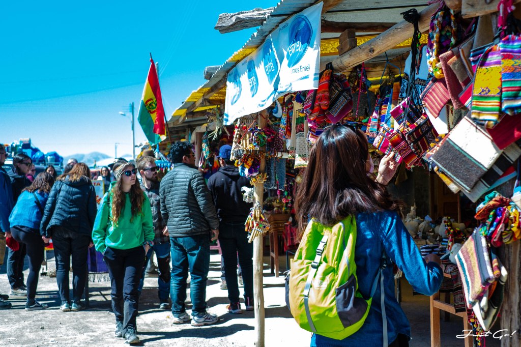 離開了火車墳場之後,我們的司機載著我們來到了Colchani小鎮,其實這個小鎮完全沒什麼特別的地方,就只是一條商店街,主要在這裡可以上個廁所(廁所使用費2BOB),採買一下烏尤尼當地的紀念品,另外也能看到其他準備出發三日團的車輛,也會在Colchani鎮上補充他們的後勤補給品。