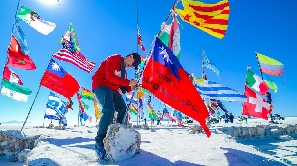 而這次來到烏尤尼的另一個任務就是把我朋友贈送的台灣國旗,再補上另一面在萬國旗這裡,讓所有來到烏尤尼的旅客都能看見我們台灣。