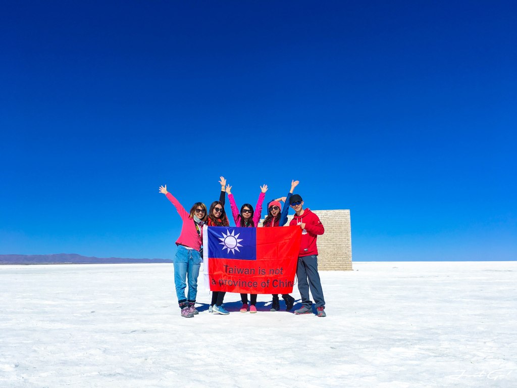 當然也要拿出朋友在我出發南美前寄送給我的台灣國旗,在烏尤尼留念一下。