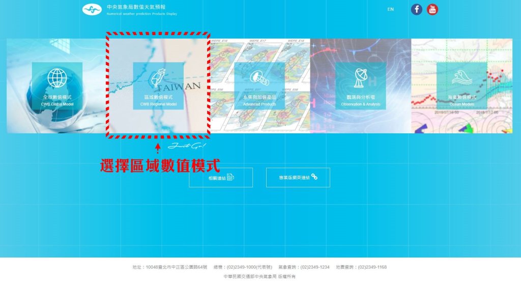 首先,先進到中央氣象局數值天氣預報首頁,選擇區域數值模式