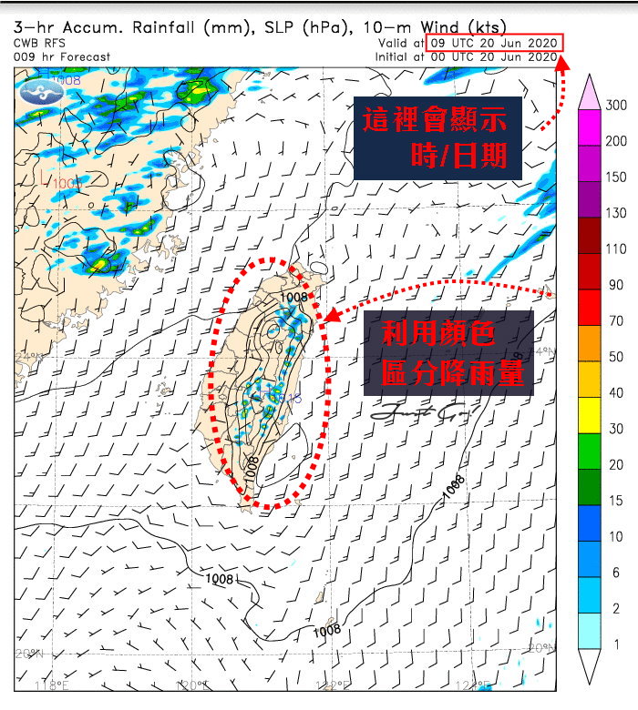 選擇『台灣』→選擇3小時累積降水→點選列表(不點選也可,只是會以動畫呈現)