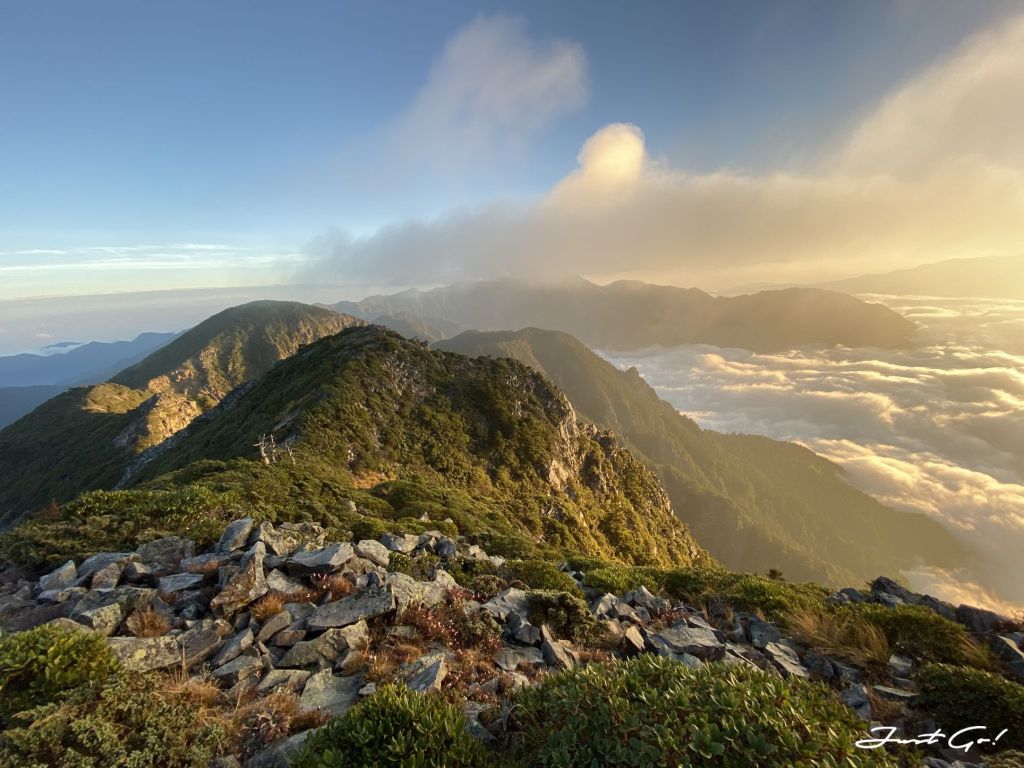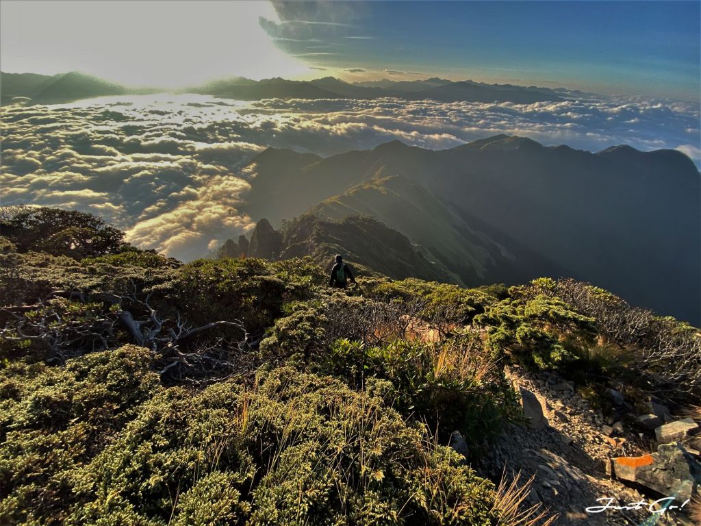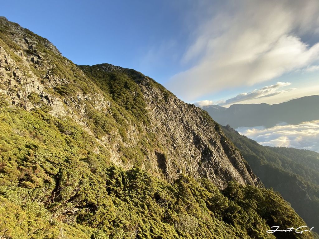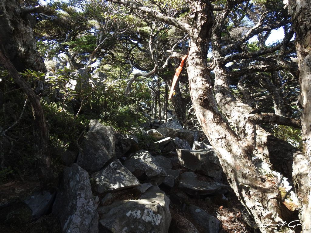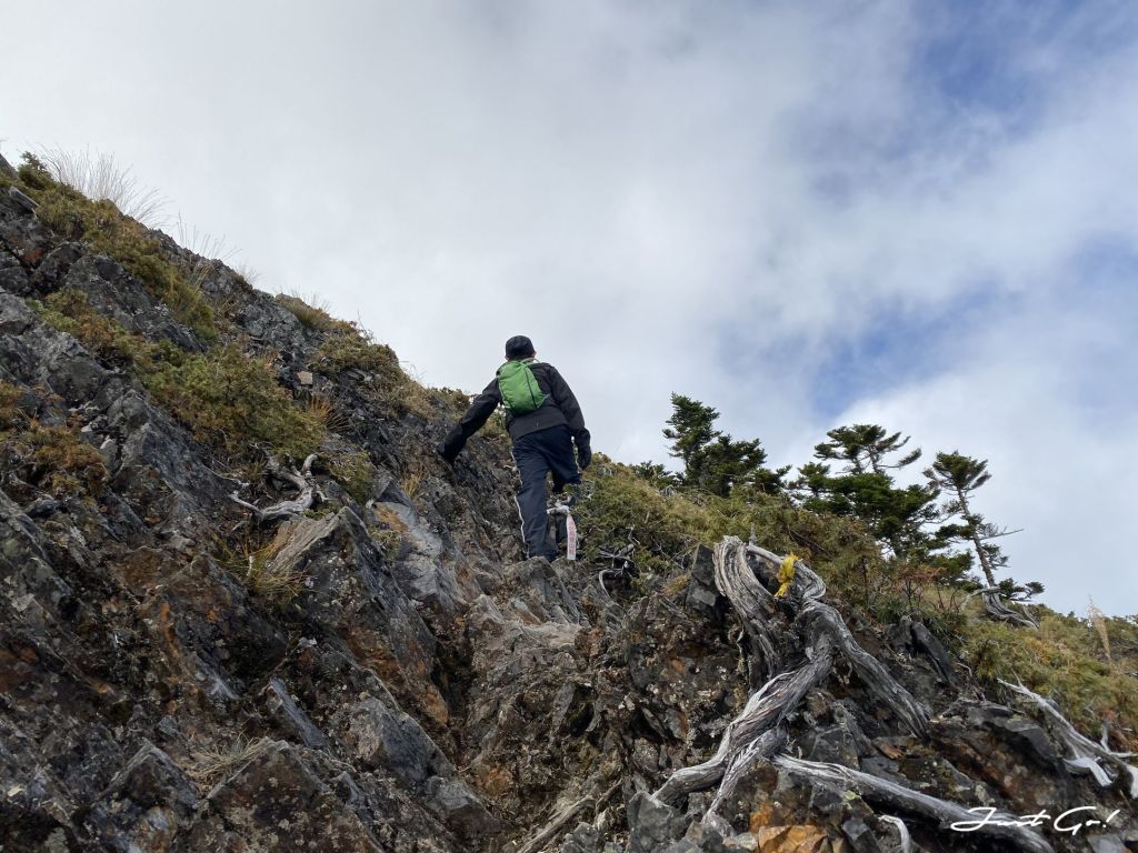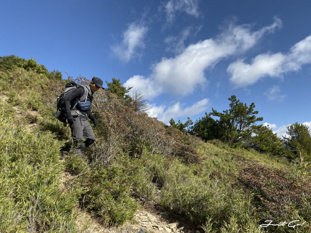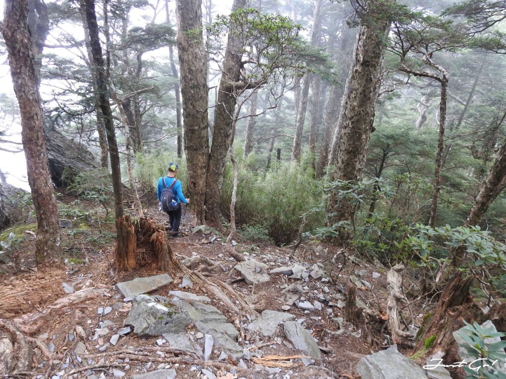 過了推論山之後,驚覺體力急速下降,呈現慢慢走、休息頻繁的狀態,原本寄望自己是能夠在第一天衝一下大劍山,但出發前工作關係熬夜了一周,加上這7~8公里陡上的加總,才知道體能的彈性已經疲乏,看起來是沒有辦法了;量力而為,幸好隊友W君也能體諒。
