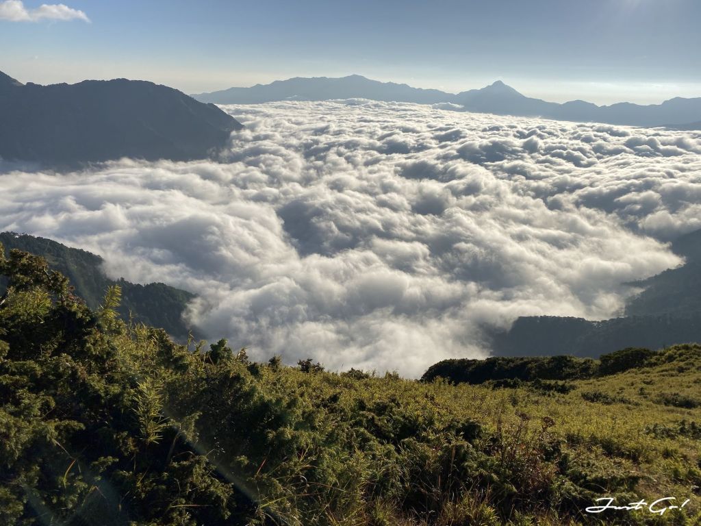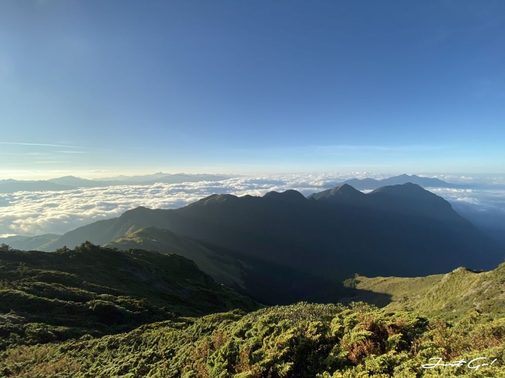 站在大劍山山頂,遙看雪山方向,試想若是從雪劍路線走來,稜線上,兩旁的景色一定很美,想必是不亞於聖稜線上的壯觀……不過,又想到燒膝蓋的天梯與太過特別的小劍,嗯,考慮考慮。