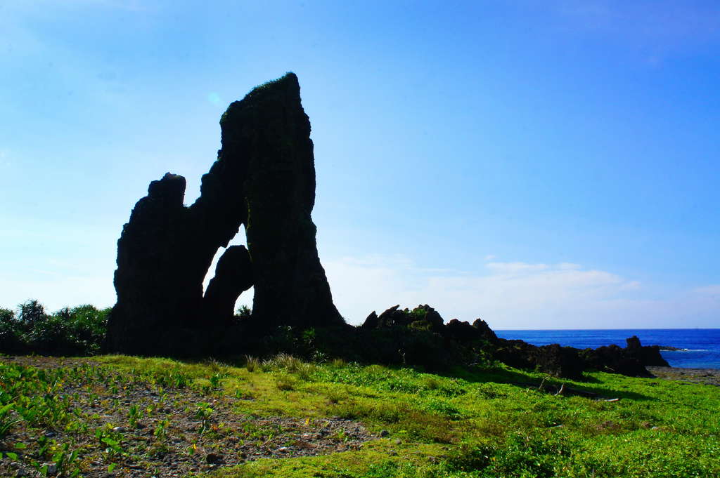 雙獅岩位於蘭嶼的東北角,遠看就像一對俯臥的公獅及母獅含情脈脈的對望,當地達悟族人將此岩稱作Jipanatosan,意思為「東清」和「朗島」兩個部落的分界線。