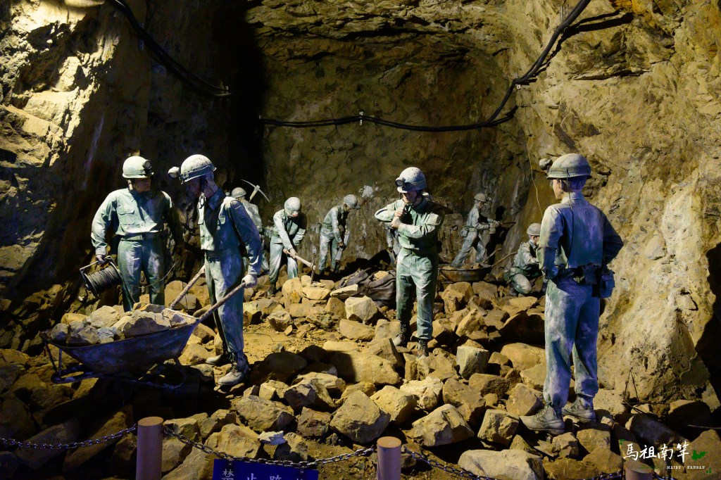 坑道內展示了當時國軍開鑿情形的模型,海水退潮時還能搭上搖櫓和獨木舟,航行在花崗岩坑道內環繞一周。