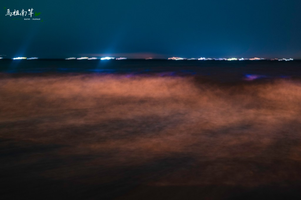 這次在晚上到仁愛沙灘上,最後只看到非常微弱的藍眼淚景象,連用相機都很難拍得出來,大多僅能夠用肉眼看到一閃而逝的藍光,下面這張是唯一一張在沙灘上有拍到藍眼淚的照片,只可惜後方畫面糊掉了,超可惜。