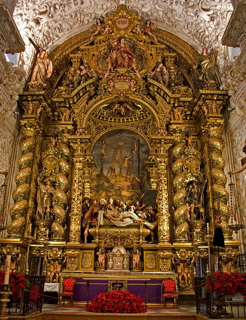 如果要說塞維亞市中心最顯眼的建築,大概非塞維亞大教堂莫屬了。塞維亞當地最早是將原本摩爾人的清真寺改作為教堂使用,後來因為日漸受損,而決定拆除原有清真寺,直接在原址重新蓋一座更大、更壯觀的教堂。如今完工後的塞維亞大教堂已經是世界第三大的教堂,僅次於羅馬的聖彼得大教堂和倫敦的聖保羅大教堂。西班牙著名的航海家,同時也是發現美洲新大陸的哥倫布之墓,同樣位於教堂內部。
