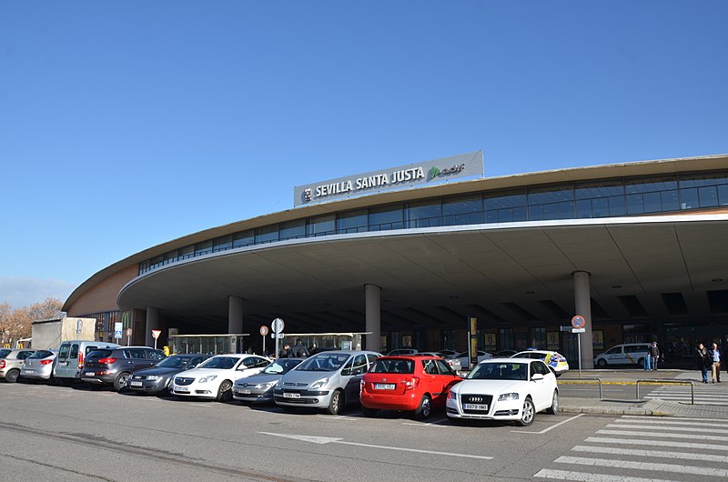 塞維亞的AVE火車站為Santa Justa火車站,位在市中心的東邊,從馬德里搭乘Renfe高鐵大約需3小時,若從巴塞隆納大約需5小時左右。雖然耗時較久,但可以省去登機手續,且火車站多位在市中心,交通相對方便許多。