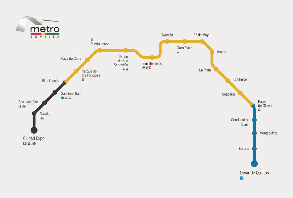 塞維亞的地鐵目前只有開通一條路線,不過這條路線並沒有經過主要的市中心,所以一般觀光客若非住在地鐵沿線,不然是不太會搭乘到的。
