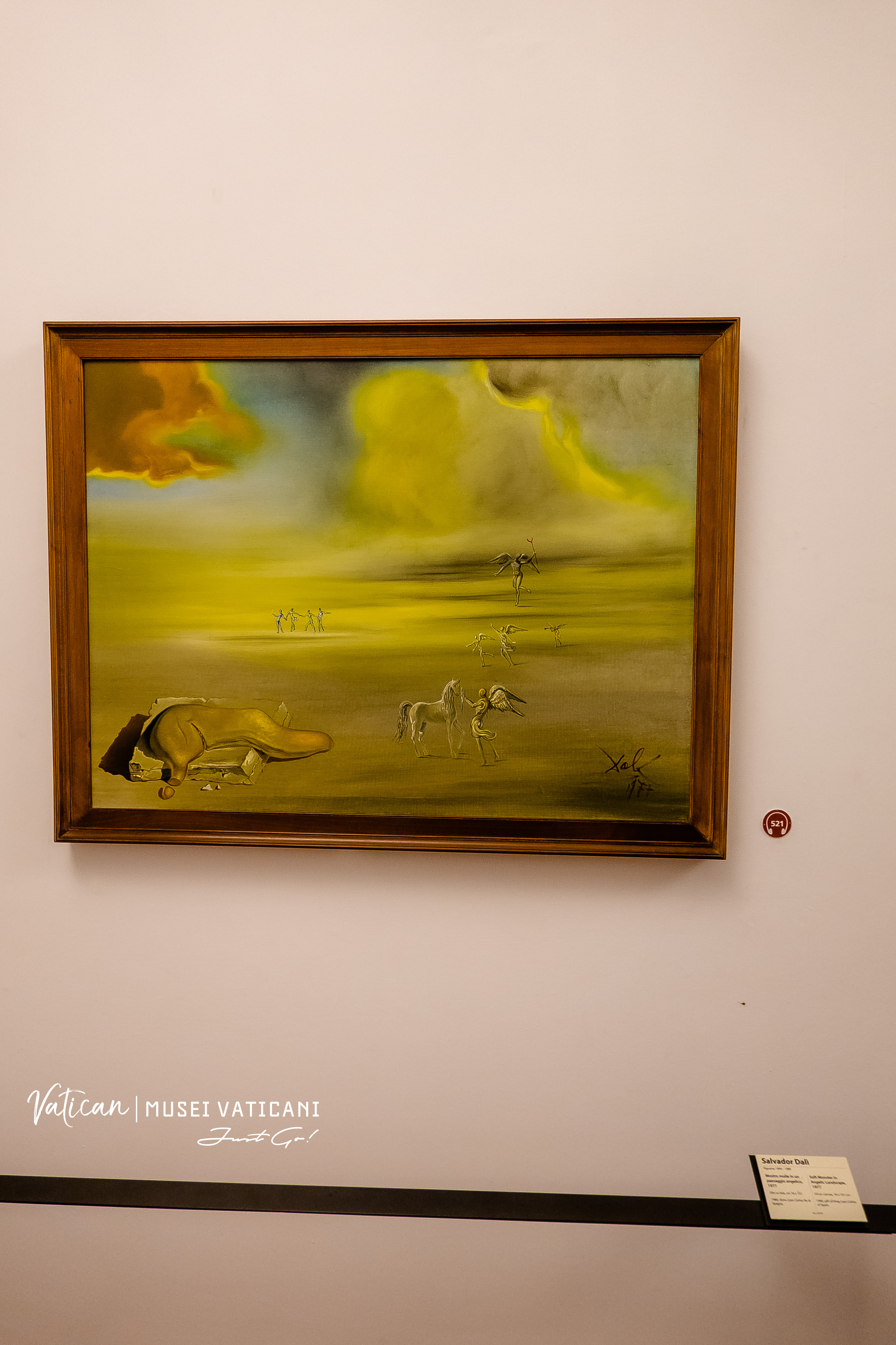 要進入西斯汀聖堂前的最後一個展區為現代美術收藏廳,裡頭主要展示著現代藝術的作品。不過由於博物館內其他的展品實在太過經典,所以這裡顯得有點相形失色,只看到大多數的人都是匆匆忙忙的走馬看花就走過。不過裡頭還是有展示如達利、羅丹等知名現代藝術大師的作品,所以還是很值得花點時間看看。