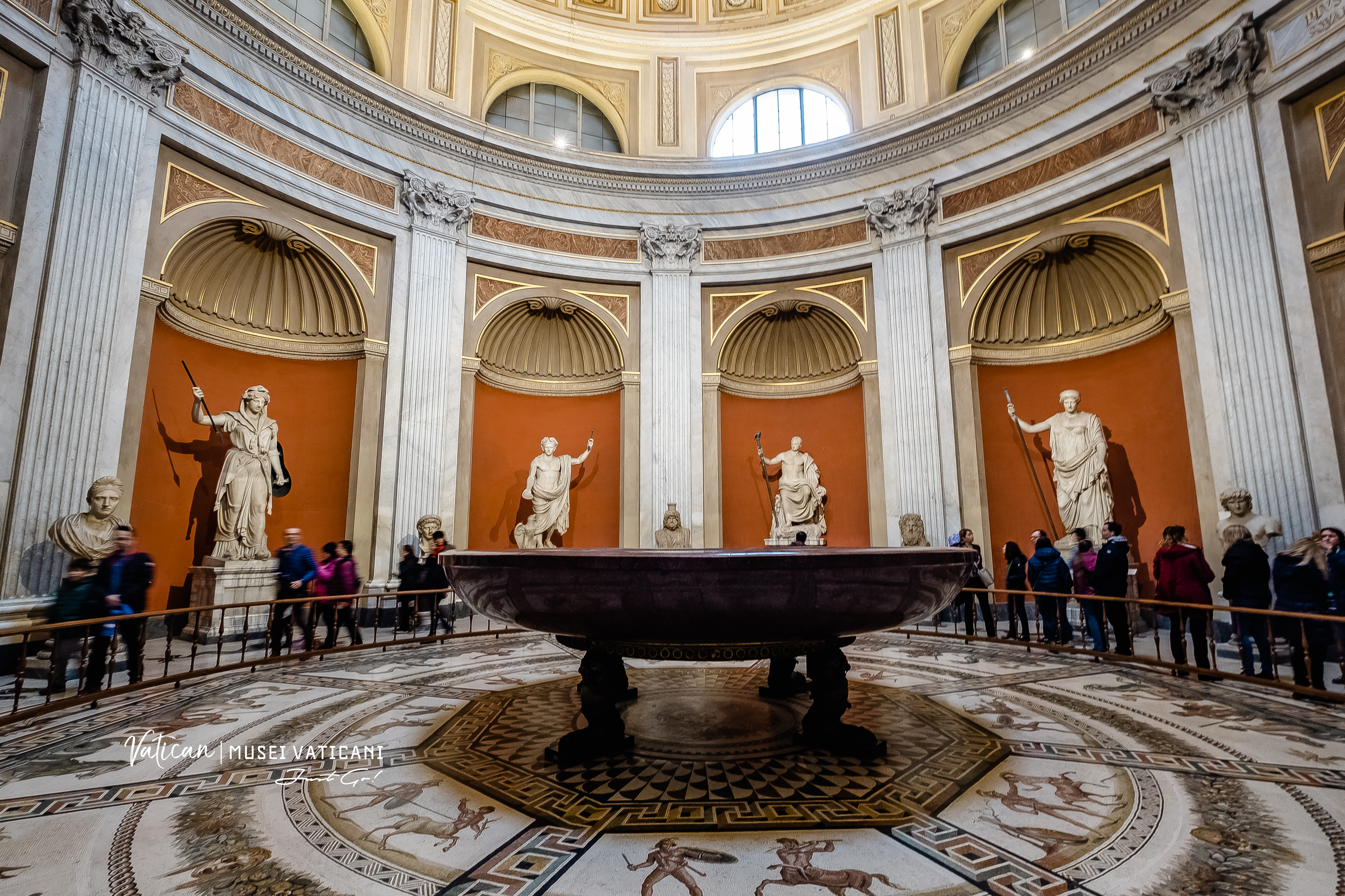 而皮歐克里門提諾展示館內主要展示羅馬時期至1800年代的各種雕刻作品,裡頭甚至有許多過去希臘化時代的原作真品。其中最著名的作品包括第二展廳的「英雄軀幹」和第三展廳正中央尼祿皇帝的浴缸以及君士坦丁大帝母親聖海倫娜的石棺。另外展廳的地板上鋪有馬賽克鑲嵌畫,內容主要以是希臘神話為背景,也是值得一看的地方。