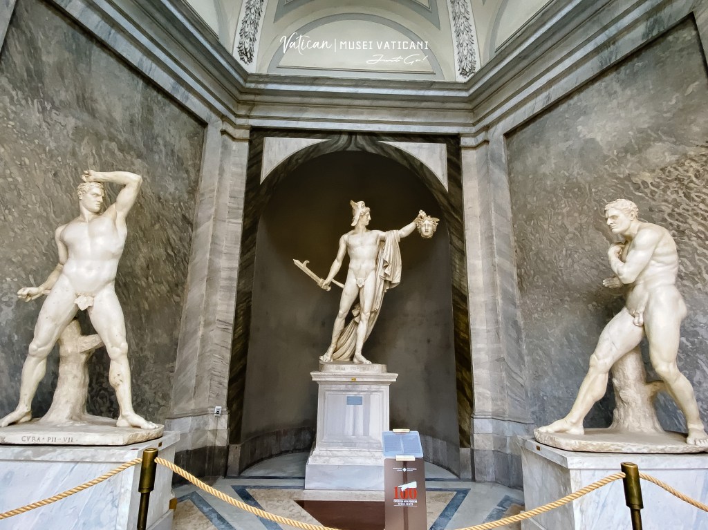 再進入皮歐克里門提諾展示館前,會先經過八角庭院。八角型的庭院展示著各種雕刻作品,其中以「勞孔群像」、「柏修斯像」和「阿波羅像」最為著名。