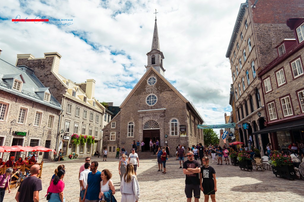 位於廣場一角的凱旋聖母教堂是加拿大最古老的石造教堂之一,於1687年開始修建,在1723年竣工。剛好碰巧遇上有當地的一對新人就在這教堂內舉行婚禮,當新娘步入教堂的那一刻,周邊的人們都大大的給予掌聲祝福。