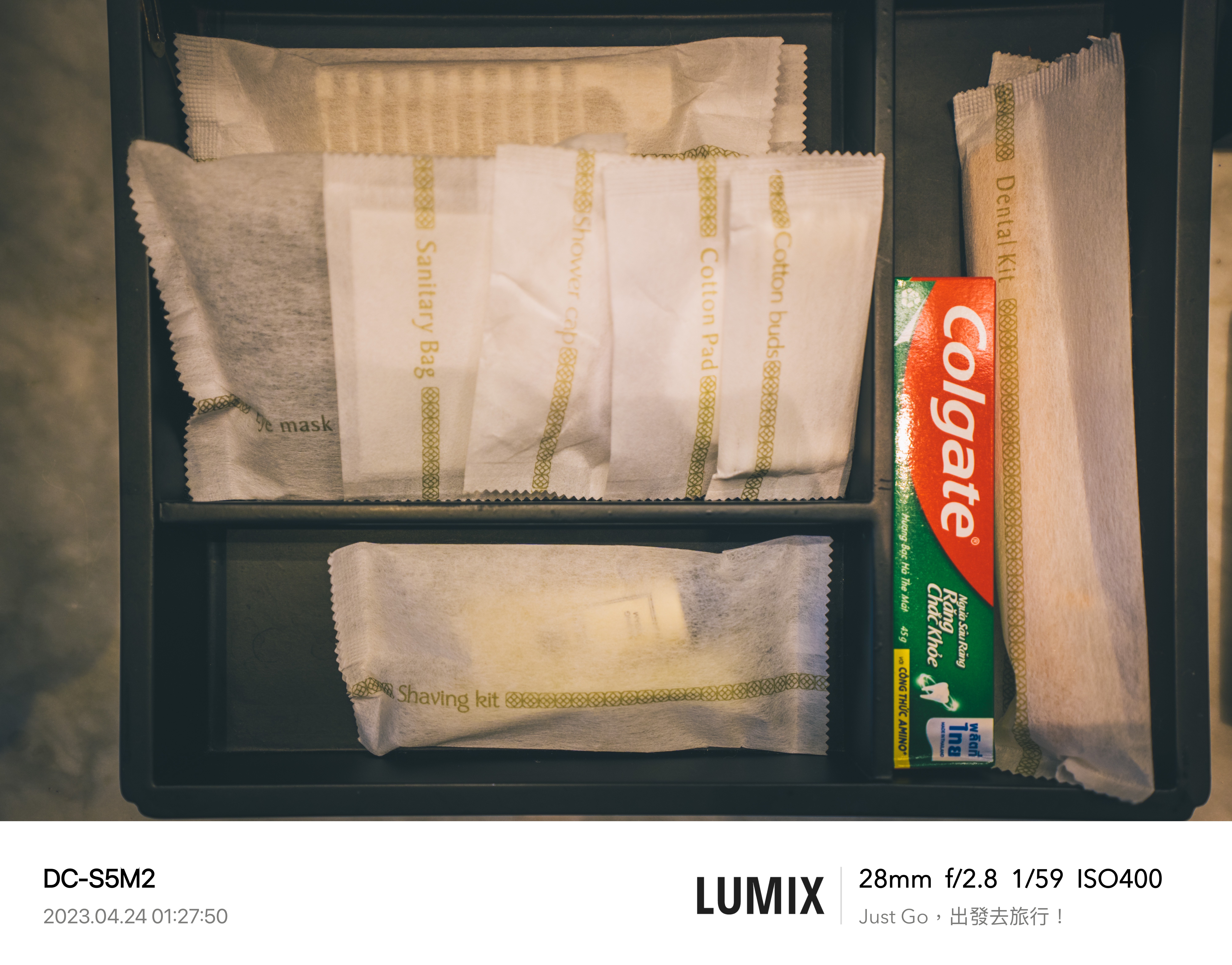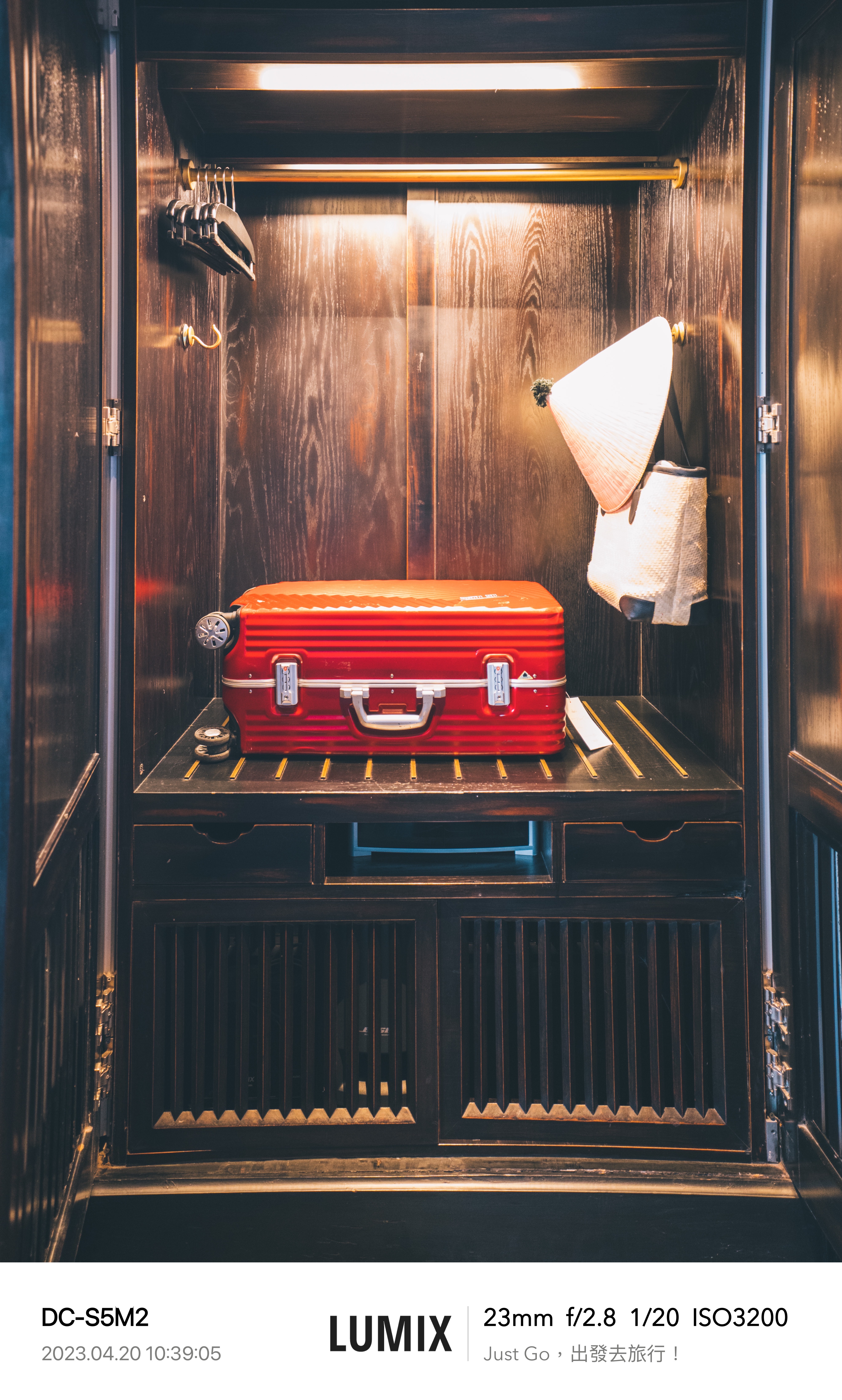 而床鋪側邊的兩個大櫥櫃則為兩個大型的衣櫥,一個衣櫥內,有可以放置大型行李箱的空間,並附有極具越南特色的斗笠和竹編手提袋和夾腳拖可讓遊客在度假村內使用,不過退房時這些物品是無法帶走的。衣櫥下方則有Bose重低音音響。至於另一個衣櫥內,則放有浴袍、室內拖鞋、熨斗以及可放置貴重物品的保險箱。